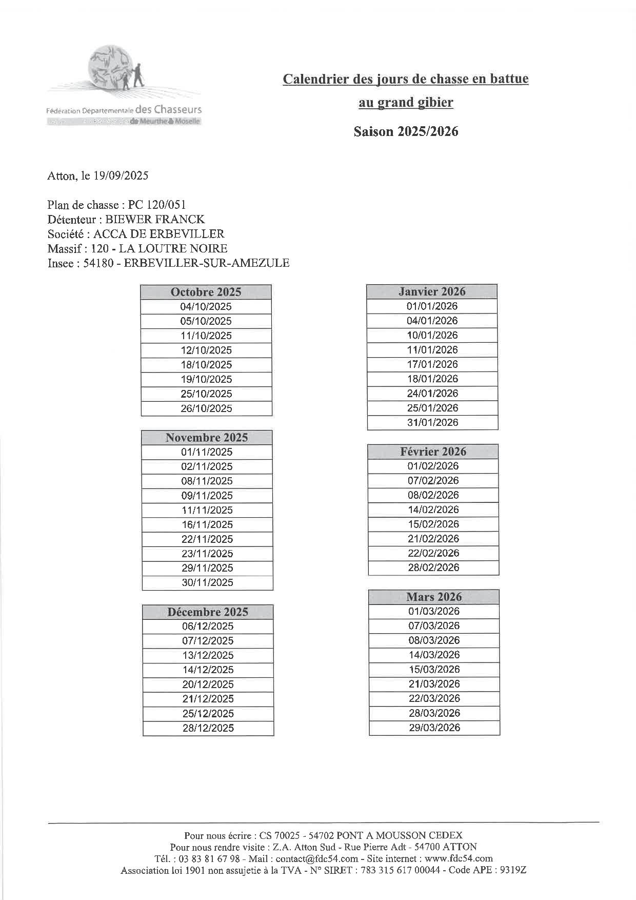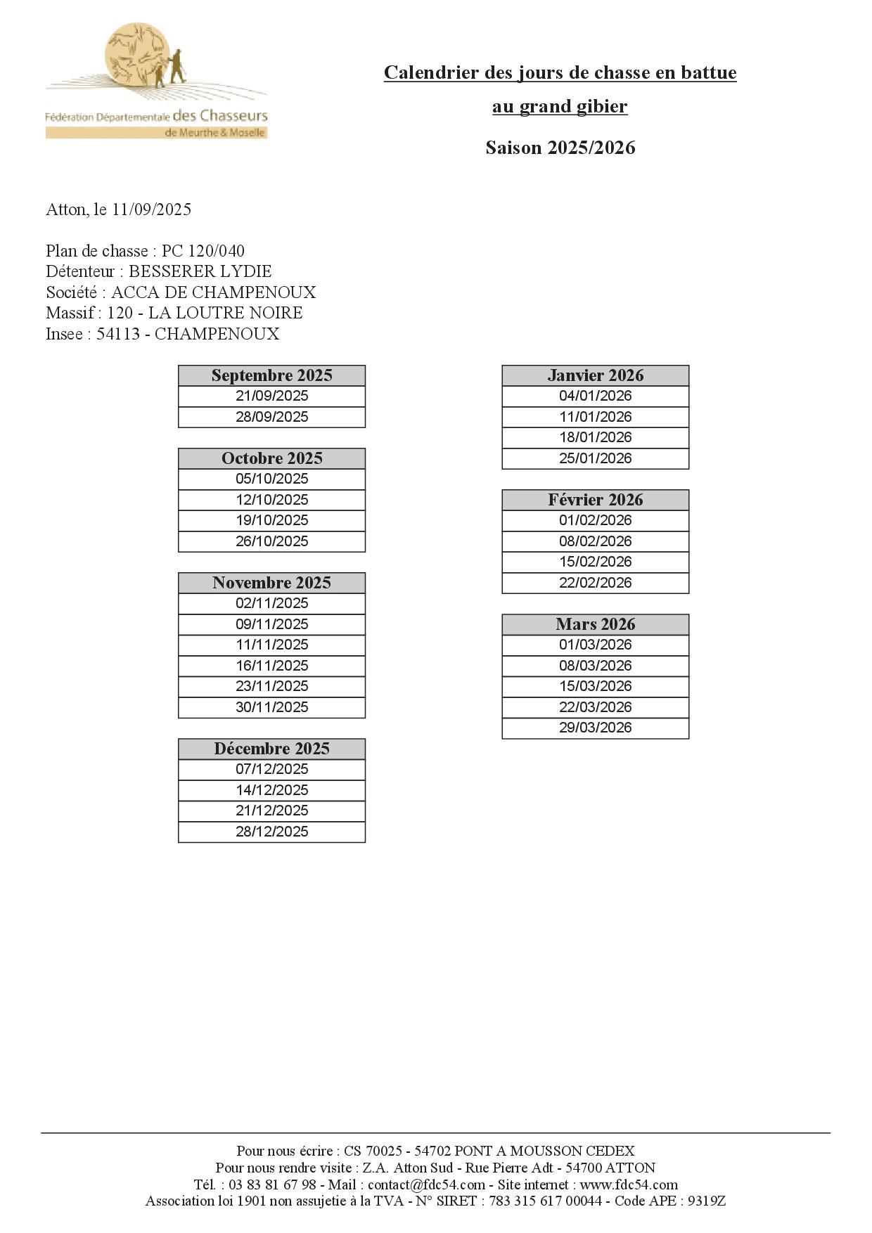 Attention : en dehors de ces zones de battues et calendriers,