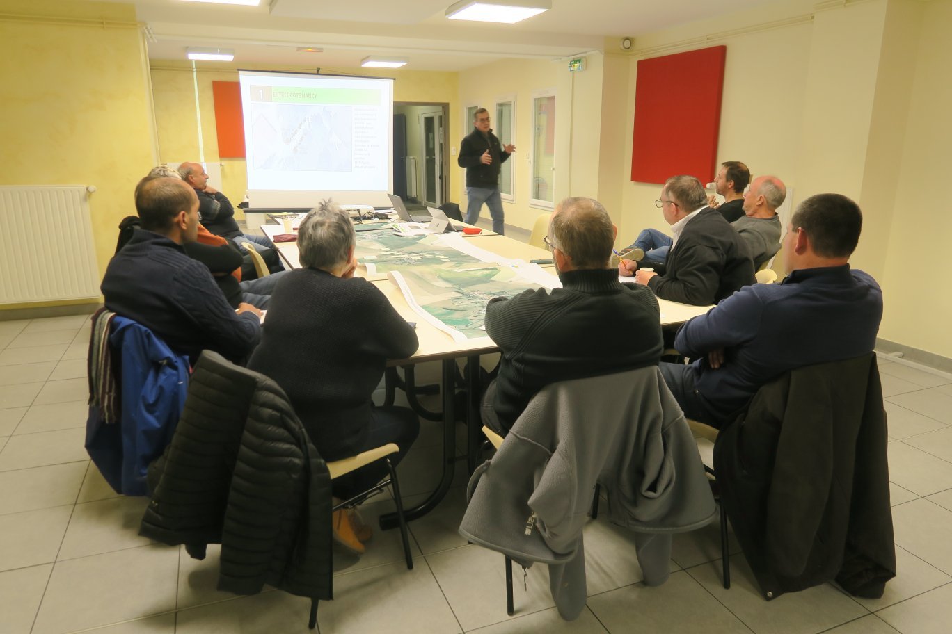 Une première réunion de concertation a eu lieu le 24 mai 2023 en soirée, une trentaine de personnes était présente. Cette réunion facilitée par le Conseil d'Architecture, d'Urbanisme et de L’Environnement a permis la réflexion autour des points forts et points faibles de notre commune, des besoins ou des craintes exprimés vis-à-vis de la réalisation de travaux de sécurisation de cette traversée de village. Ce travail a été réalisé en petits groupes autour des mêmes thèmes.