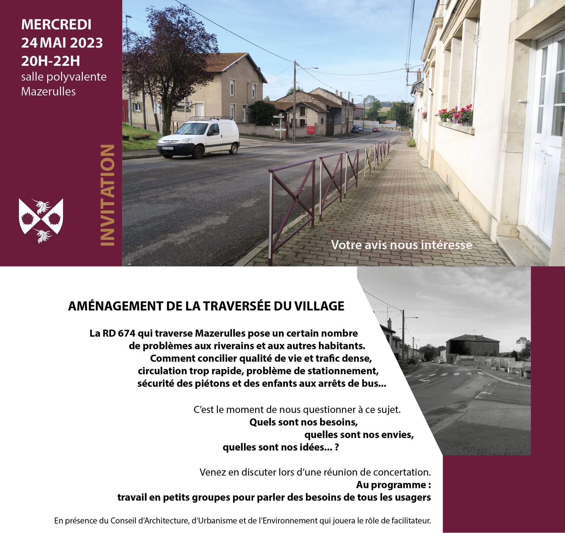 La RD 674 qui traverse Mazerulles pose un certain nombre de problèmes aux riverains et aux autres habitants.